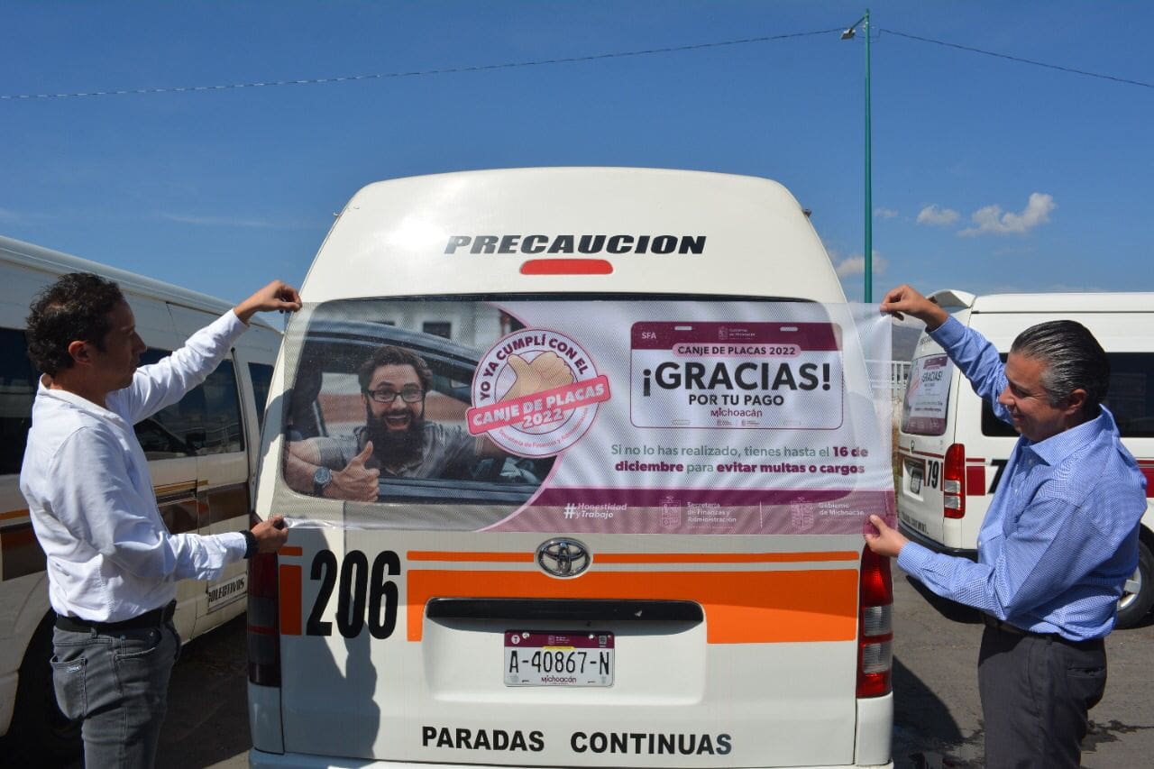 Navarro García expresó su reconocimiento a los diferentes sectores de la población michoacana, como las agrupaciones del transporte colectivo, que han cumplido con el pago y el canje de placas de circulación. Agradeció a los transportistas que han ofrecido sus unidades para el pegado de calcomanías que reconocen a la sociedad que ya realizó el trámite y exhortan a hacerlo a quienes, por determinadas causas, no han acudido a los módulos y a las ventanillas de las oficinas recaudadoras que se encuentran en el estado.