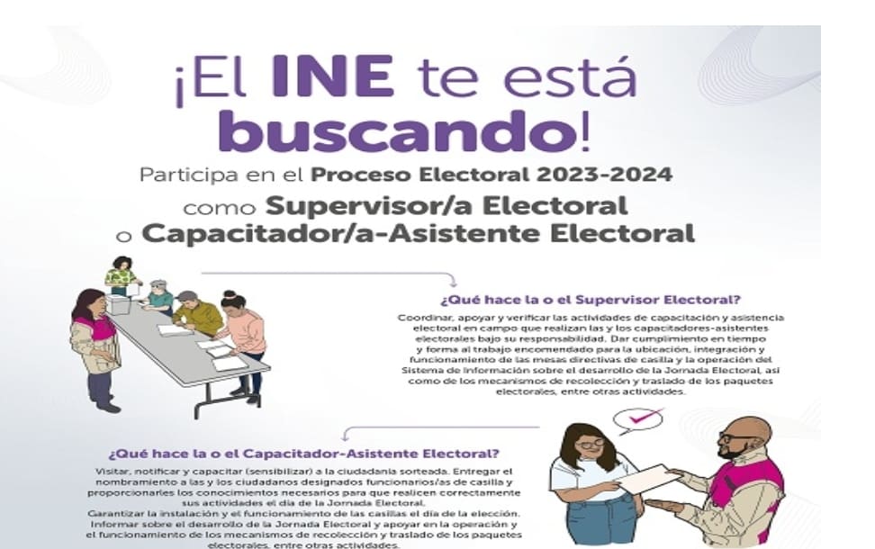 La 03 Junta Distrital Ejecutiva del INE en Michoacán invita a las ciudadanas y los ciudadanos de los municipios de Angangueo, Aporo, Contepec, Epitacio Huerta, Juárez, Jungapeo, Maravatío, Ocampo, Senguio, Susupuato, Tlalpujahua, Tuxpan, Tuzantla y Zitácuaro que estén interesados en trabajar en el Instituto Nacional Electoral, como Supervisor/a o Capacitador/a Asistente Electoral; en el Distrito Electoral Federal 03 se cuenta con aproximadamente 186 vacantes, incluyendo ambos cargos.