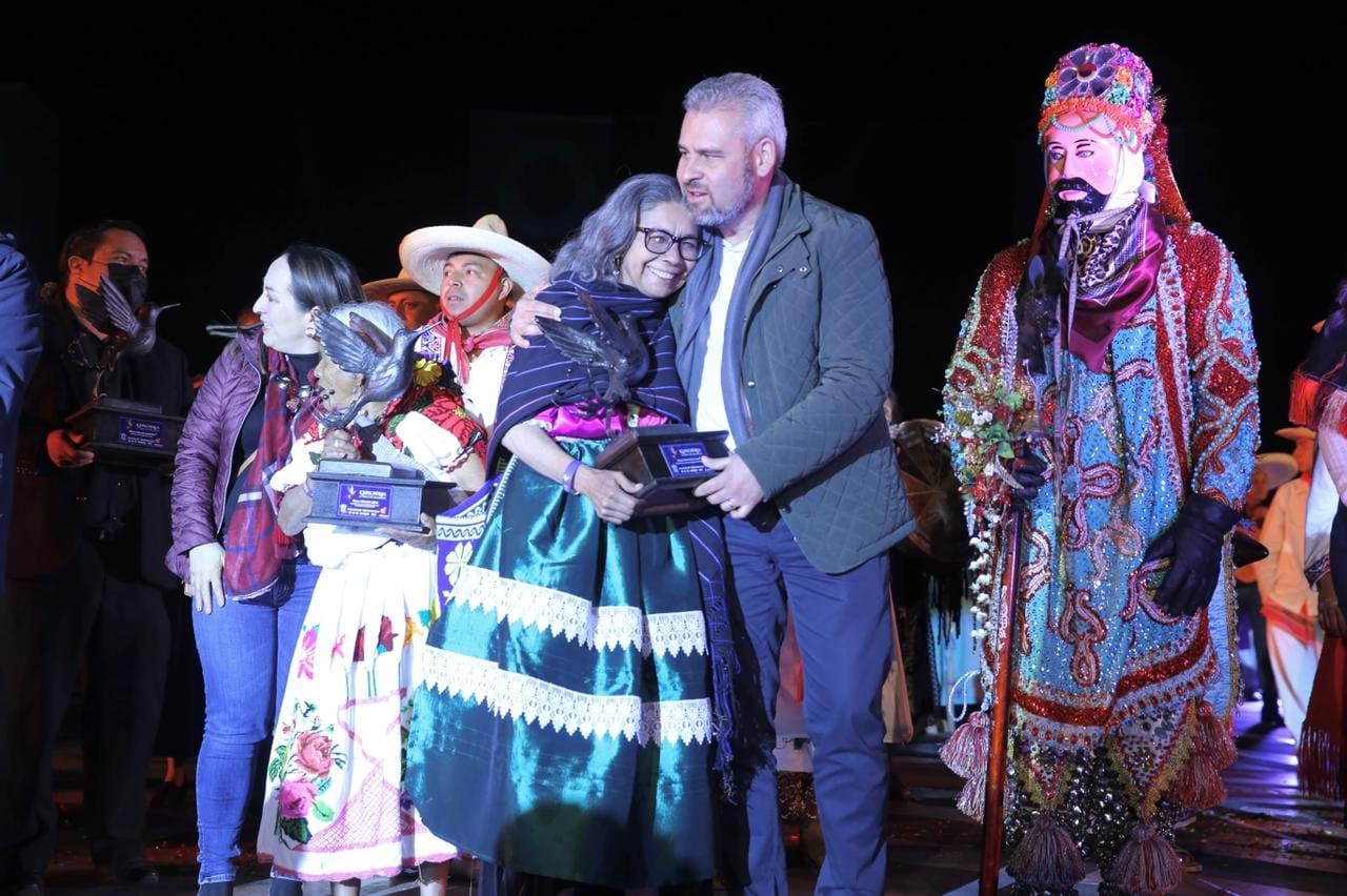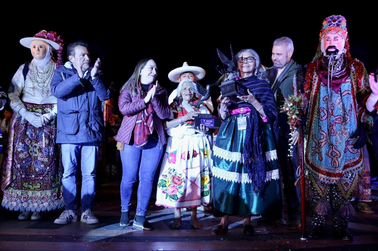 Al finalizar las danzas y representaciones de los pueblos originarios, el mandatario entregó seis reconocimientos a quienes por años han trabajado para mantener la cultura y tradición de las comunidades michoacanas, destacando Nana Paula Cazares López, de 101 años de edad, danzante de la comunidad de Jarácuaro, municipio de Erongarícuaro.