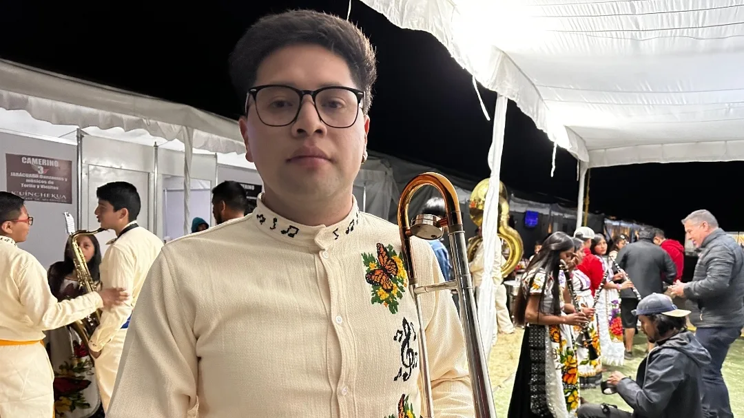 • Iván Jiménez representa las tradiciones de su región con la banda sinfónica de Arantepacua