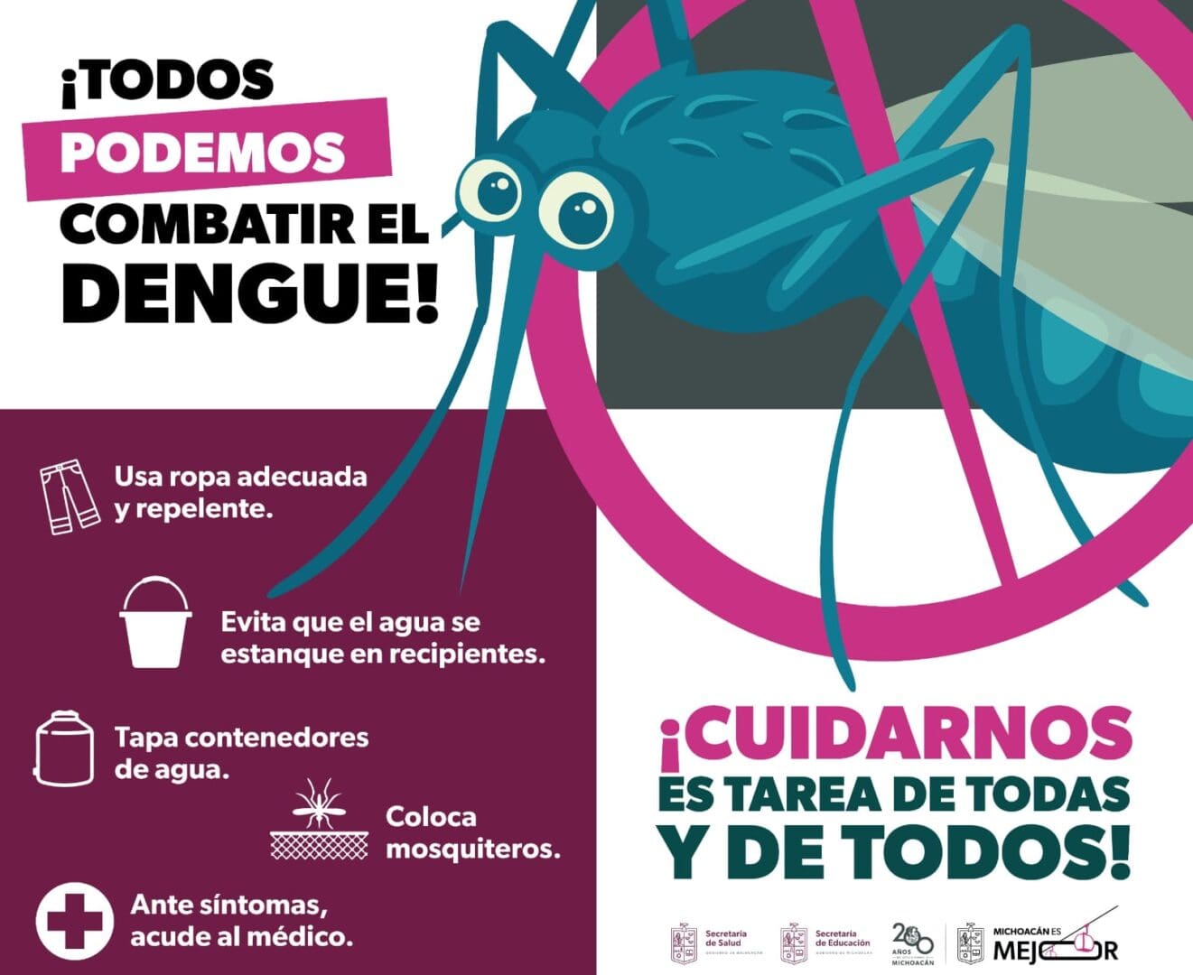 Morelia, Michoacán, 26 de octubre de 2024. La Secretaría de Educación del Estado (SEE) de Michoacán ha reforzado sus esfuerzos para prevenir la propagación del dengue en el ámbito escolar, alertando sobre la necesidad de combatir al mosquito Aedes aegypti, transmisor de esta enfermedad. La iniciativa destaca la importancia de mantener las instituciones educativas libres de posibles focos donde el mosquito pueda reproducirse.