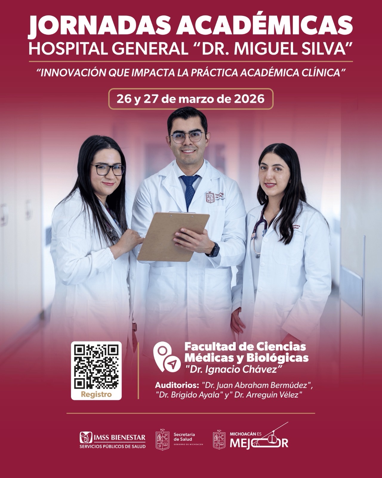 De acuerdo con el programa oficial, el encuentro se llevará a cabo los días 26 y 27 de marzo en las instalaciones de la Facultad de Ciencias Médicas y Biológicas “Dr. Ignacio Chávez”, perteneciente a la Universidad Michoacana de San Nicolás de Hidalgo (UMSNH). La temática central de esta edición se titula “Innovación que impacta la práctica clínica”.