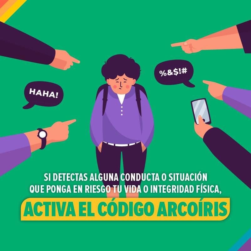 Cualquier persona que detecte alguna conducta o situación que ponga en riesgo la vida o la integridad física, puede activar el Código Arcoíris, a fin de recibir apoyo.