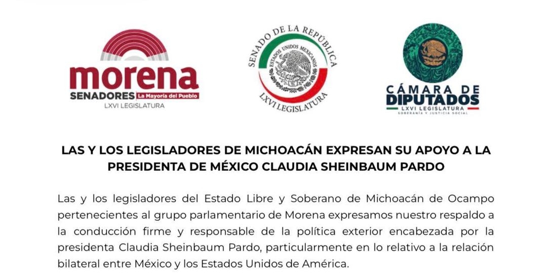 Legisladores federales de Michoacán del grupo Morena expresan respaldo a política exterior de Claudia Sheinbaum