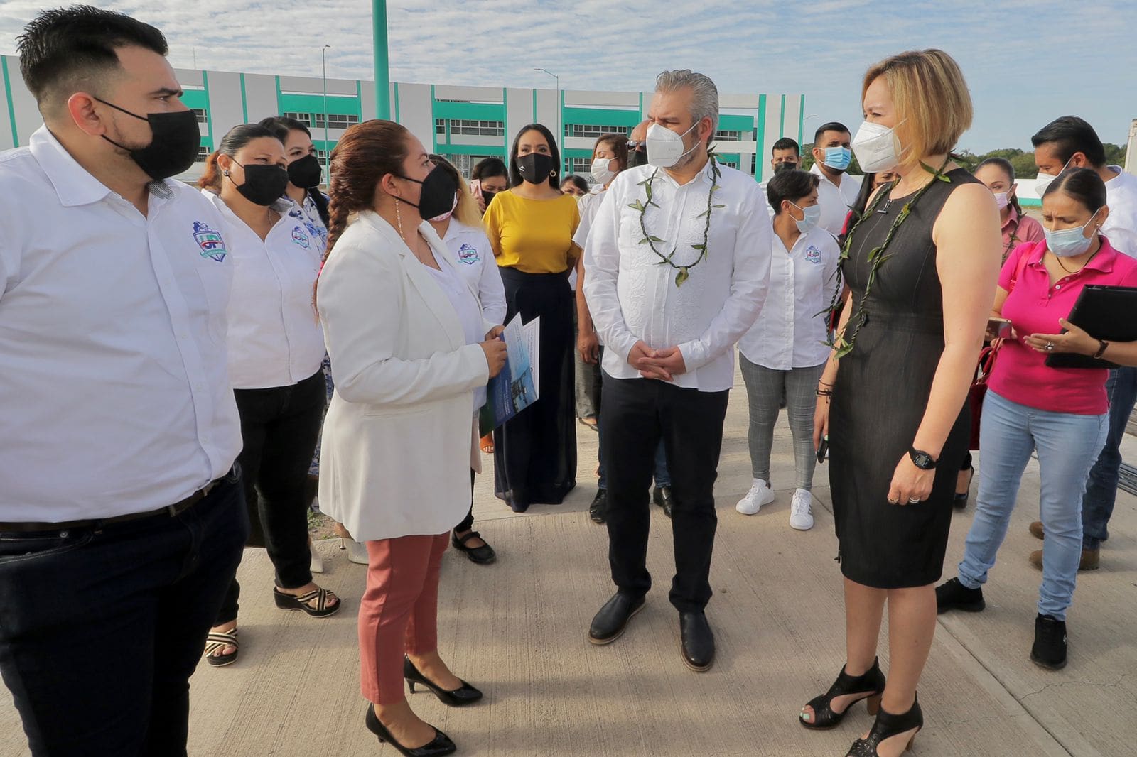 En esta visita estuvieron también presentes Itzé Camacho, presidenta municipal de Lázaro Cárdenas; Yarabí Ávila González, secretaria de Educación en el estado; entre otras autoridades, diputados y representantes sindicales.