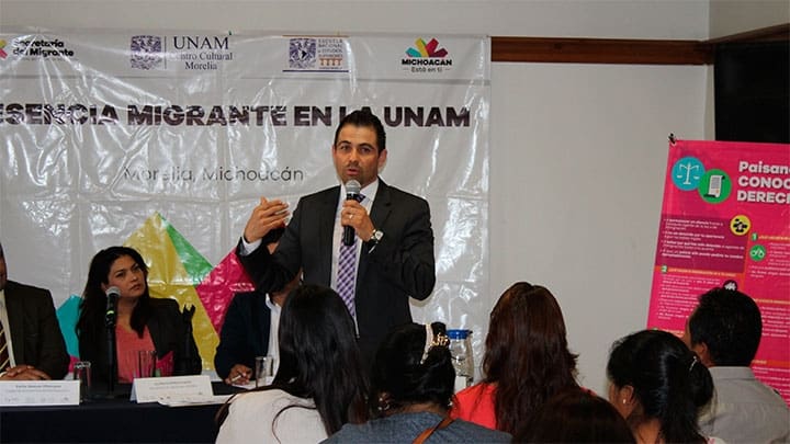Morelia, Michoacán.- En el marco de los foros “Presencia Migrante en la UNAM”, organizados por la Secretaría del Migrante (Semigrante) y el campus Morelia de la Universidad Nacional Autónoma de México, se llevó a cabo el conversatorio “Mitos y realidades de las remesas en la era Trump”.