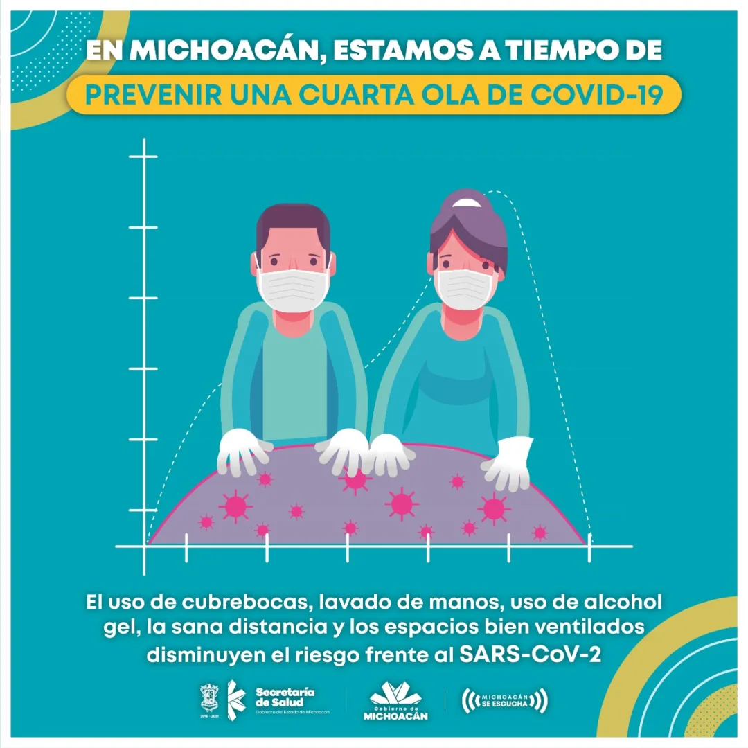Morelia, Michoacán, a 23 de septiembre de 2021.- La Secretaría de Salud de Michoacán (SSM), exhorta a la población a extremar las medidas sanitarias contra el COVID-19 ante una posible cuarta ola de contagios durante la temporada invernal.