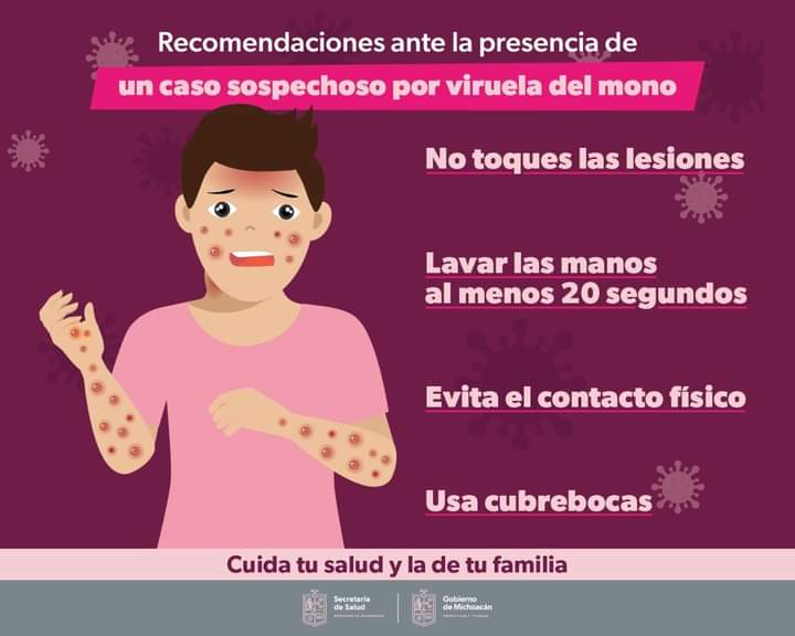 Hasta el momento, Michoacán ha registrado siete casos de viruela símica, mismos que la SSM dio seguimiento y tratamiento médico oportuno para su recuperación, con lo que se evitaron otros contagios.