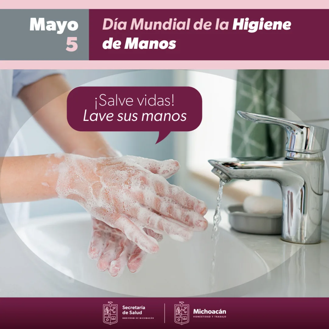 Morelia, Michoacán, 5 de mayo de 2023.- Bajo el lema ¡Salve vidas! Lave sus manos, la Secretaría de Salud de Michoacán (SSM), conmemora el Día Mundial de la Higiene de Manos, fecha dedicada a incrementar el conocimiento de esta práctica efectiva y económica que puede prevenir enfermedades y salvar vidas.