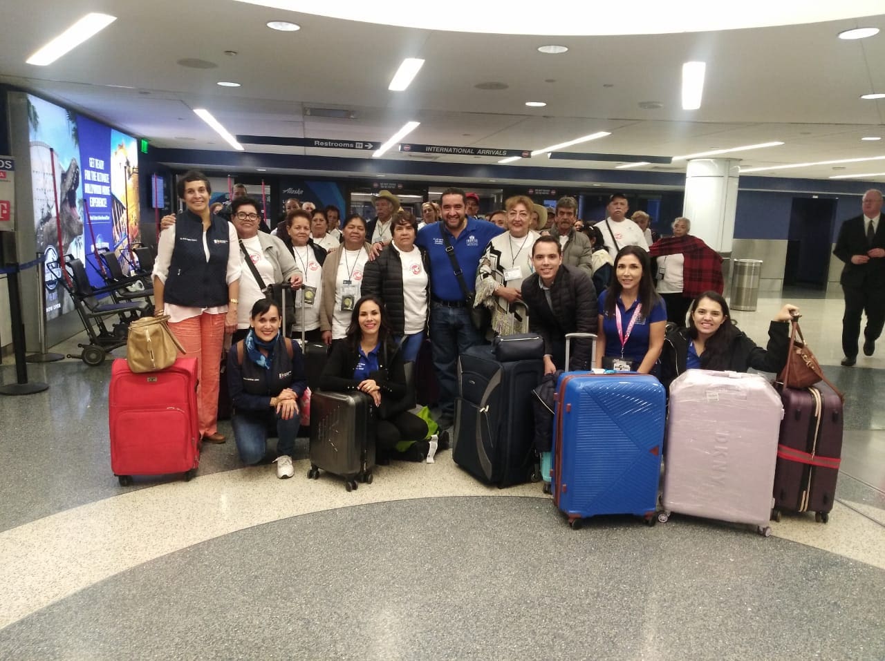 También del aeropuerto de Guadalajara, pero provenientes del municipio de Apatzingán, salieron 23 personas adultas mayores, para viajar a Los Ángeles, California, donde a ritmo de canciones entonadas por un mariachi y sentimientos a flor de piel, fueron recibidos por sus hijas, hijos, nueras, yernos, nietas, nietos, bisnietas y bisnietos.