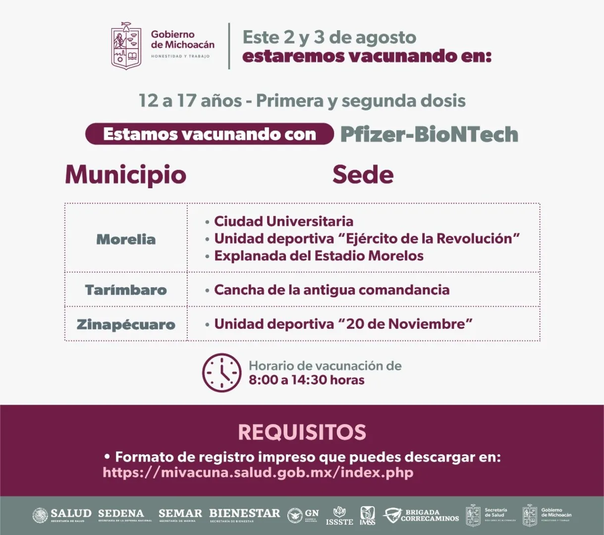 La vacunación comenzará este 1 de agosto y se inmunizará a los adolescentes de 12 a 17 años; las sedes ya están anunciadas en las páginas oficiales de la Secretaría de Salud de Michoacán (SSM).