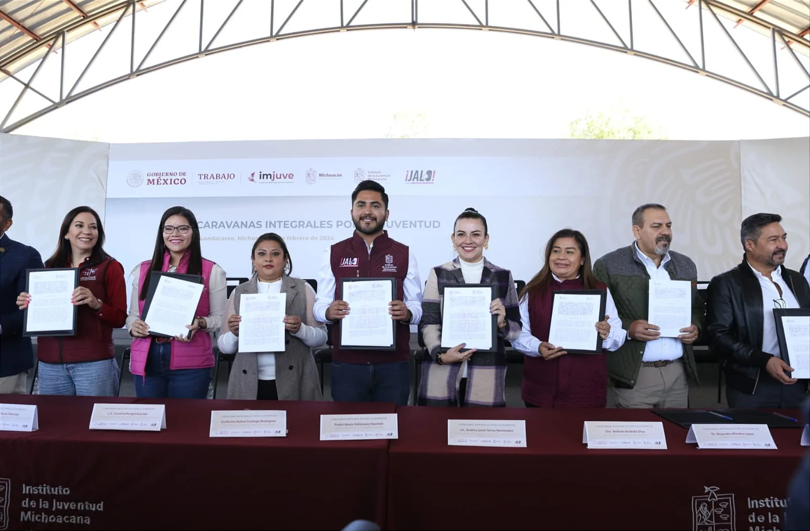 Huandacareo, Michoacán, 6 de febrero de 2024.- El Instituto de la Juventud Michoacana (Ijumich) llevará este año Caravanas Integrales a 20 municipios del estado para acercar a los jóvenes actividades y servicios del Gobierno del Estado, en temas de salud, medio ambiente, cultura, entre otros.