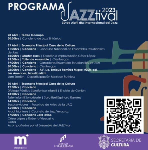 En este sentido, la Secretaría de Cultura de Morelia en conjunto con el Jazztival informan que realizarán un taller infantil para niños y niñas enfocado a que la niñez pueda desarrollar su talento musical y literario dado que durante este espacio también se brindará un tiempo para la literatura. Este taller se desarrollará el sábado 29 de abril a las 14:30 horas en la Calzada Fray Antonio de San Miguel.