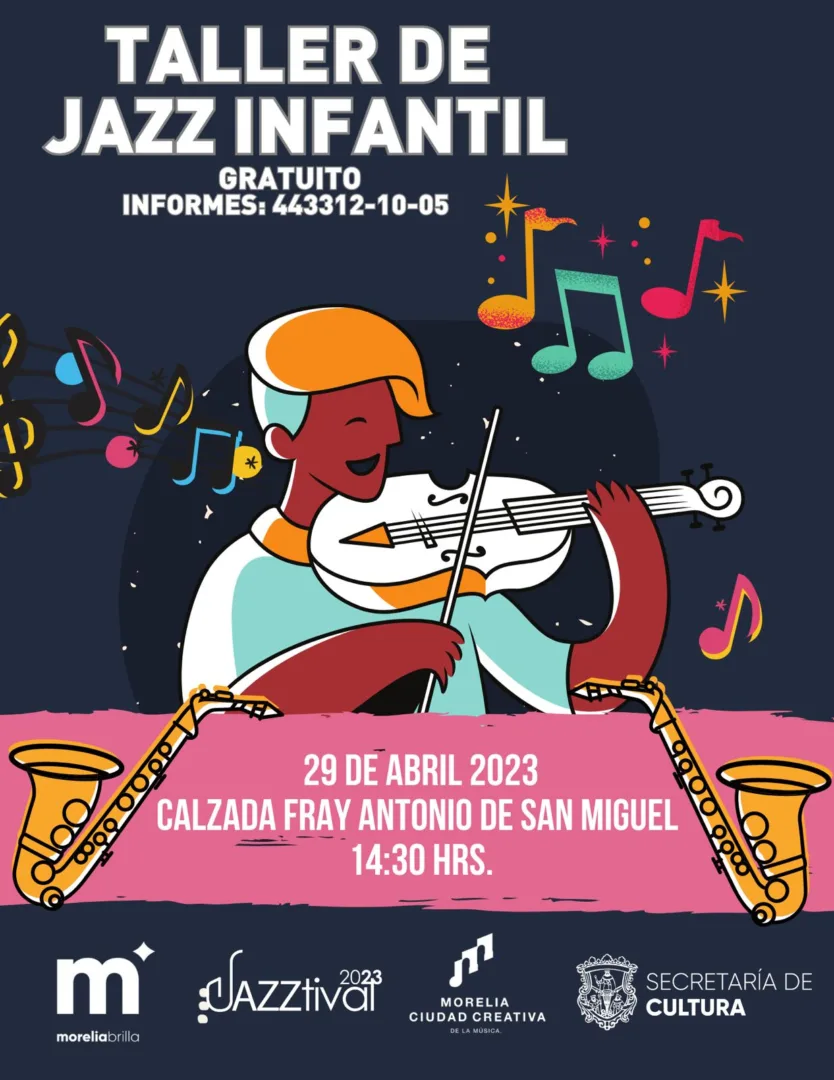 En este sentido, la Secretaría de Cultura de Morelia en conjunto con el Jazztival informan que realizarán un taller infantil para niños y niñas enfocado a que la niñez pueda desarrollar su talento musical y literario dado que durante este espacio también se brindará un tiempo para la literatura. Este taller se desarrollará el sábado 29 de abril a las 14:30 horas en la Calzada Fray Antonio de San Miguel.