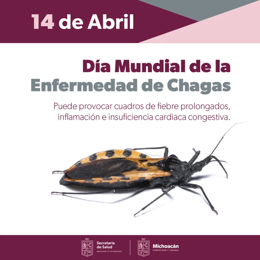 En el Día Mundial de la Enfermedad de Chagas, que se conmemora cada 14 de abril, la dependencia estatal recuerda a la población que el insecto portador tiene como principales características físicas: cabeza afiliada, cuerpo chato, patas negras, bordes de color café y anaranjado, y mide desde dos milímetros hasta 3.5 centímetros. Es endémico de zonas cálidas, pero pueden reproducirse en espacios con acumulación de madera y piedras, o en techos y muros de adobe.