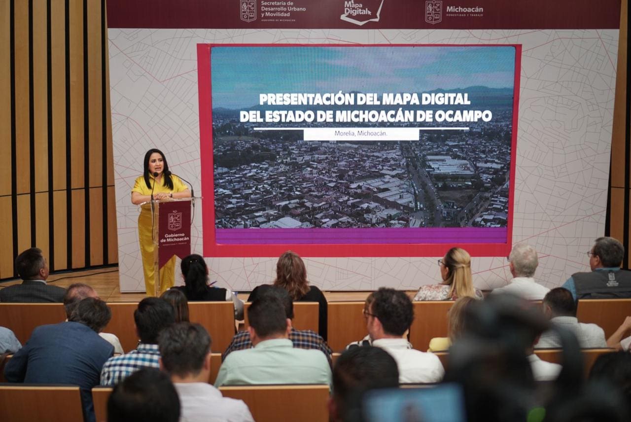 La titular de la Sedum explicó que el Mapa Digital de Michoacán ofrece la posibilidad de conocer a detalle información relevante, permitiendo la consulta, visualización y descarga de contenido de los instrumentos de desarrollo urbano vigentes en el estado en sus distintas escalas (estatal, regional, metropolitana y municipal), útiles para la ordenación del territorio ejecutados por los gobiernos estatal y locales.