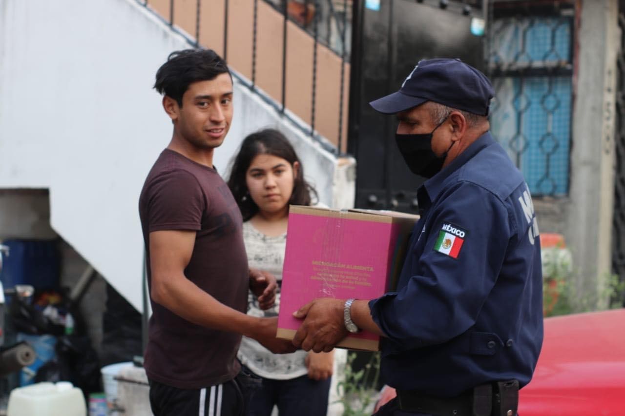 Reconoció en este proceso la labor permanente y profesional de las y los elementos de la Policía Michoacán, quienes son los encargados de hacer llegar la despensa en mano propia a las y los michoacanos que más lo necesitan.