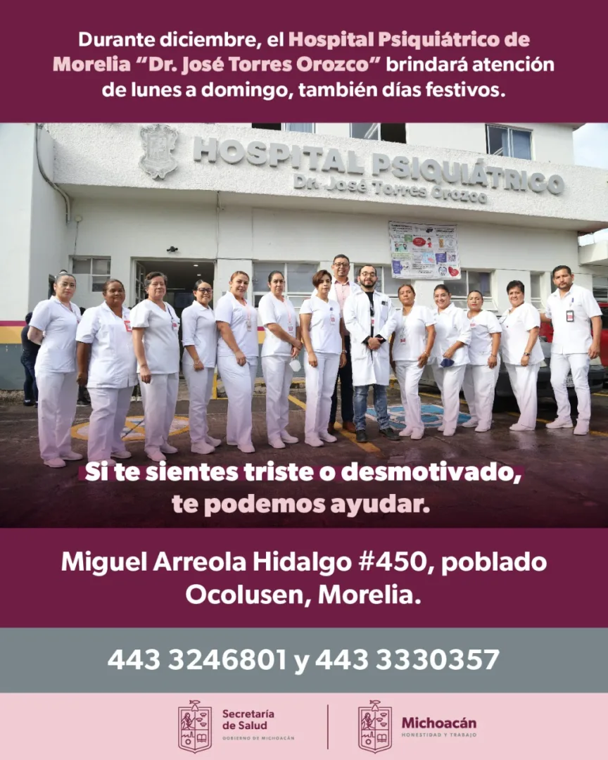 El Hospital Psiquiátrico pone a disposición las líneas telefónicas 4433246801 y 4433330357 para solicitar informes sobre los servicios de la unidad o tramitar una cita.