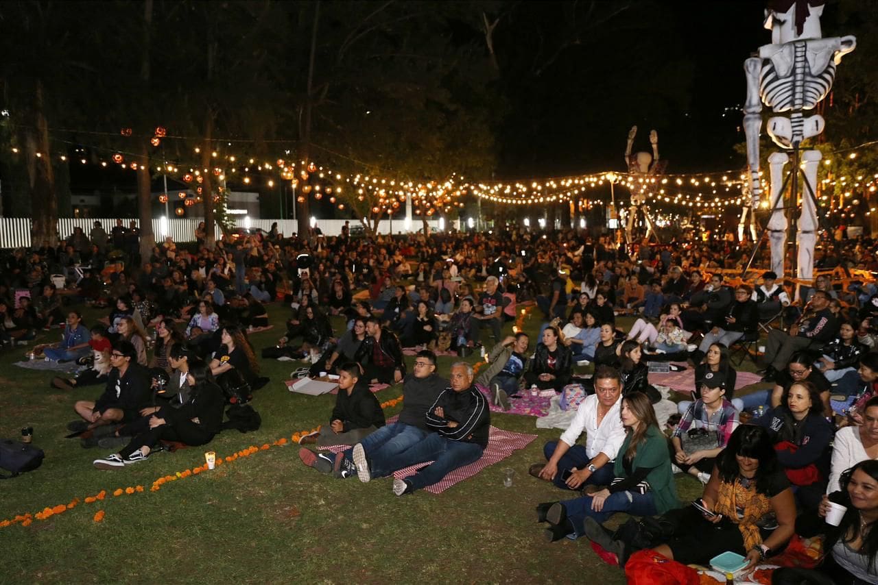 Entre ofrendas tradicionales, calaveras monumentales y la naturaleza de los jardines, los asistentes disfrutaron de los clásicos del rock, interpretados por la banda moreliana La Gran Jamona.