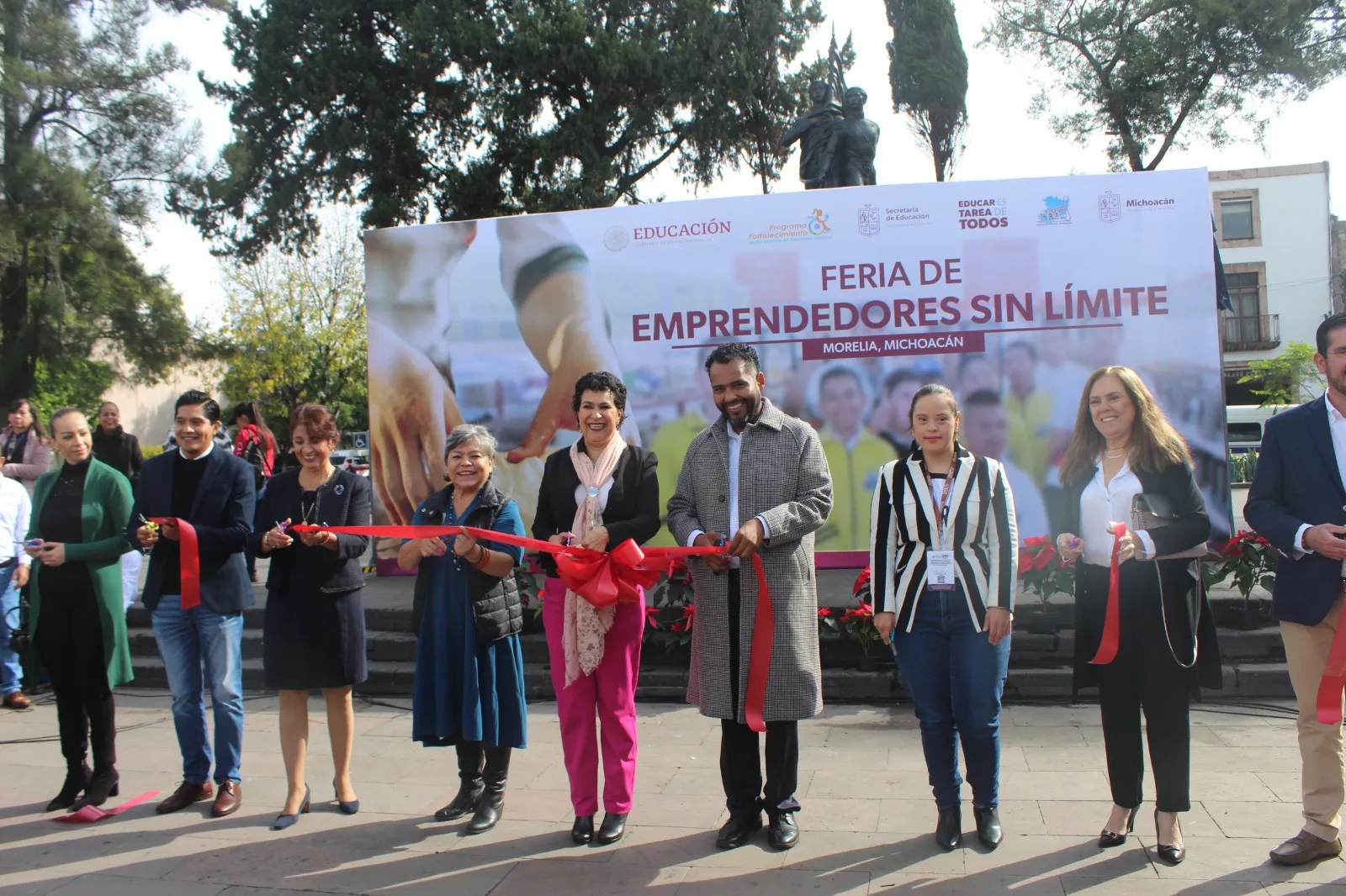 Morelia, Michoacán, 4 diciembre de 2023.- A fin de integrar a los alumnos del Centro de Atención Múltiple (CAM) en la vida laboral, la Secretaría de Educación del Estado (SEE) en el marco de las acciones del Programa Fortalecimiento de los Servicios de Educación Especial (PFSEE) en coordinación con la subdirección de Educación Especial, inauguró la “Feria de Emprendedores sin Límites” en la plaza Niños Héroes, donde participaron más de 300 jóvenes.