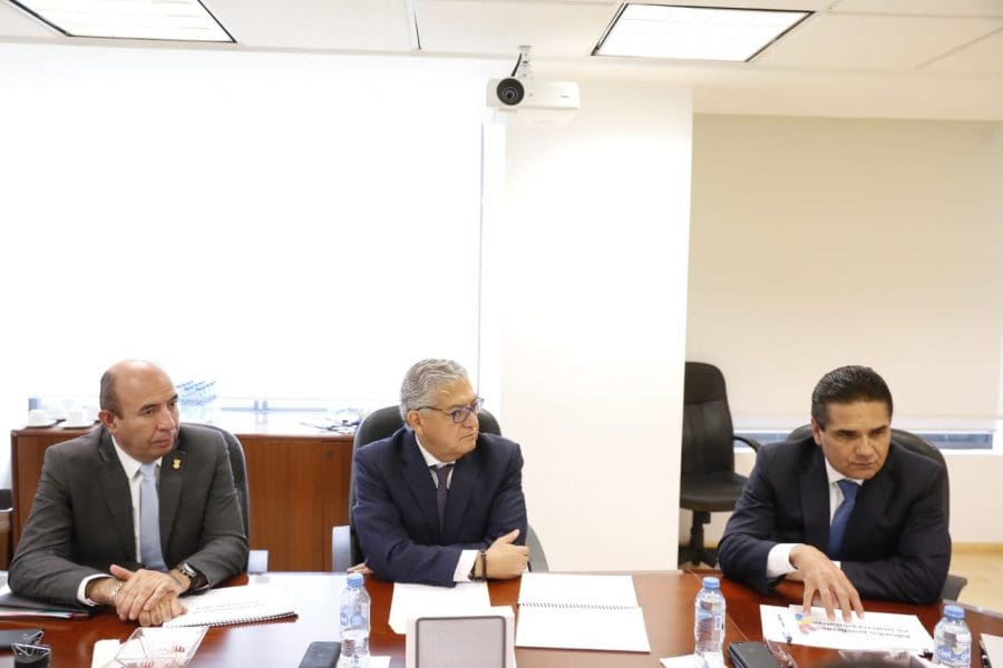 Acompañado de los secretarios de Finanzas y Administración, Carlos Maldonado Mendoza, y de Educación, Alberto Frutis Solís, el titular del Ejecutivo Estatal se reunió con la jefa de la Unidad de Inversiones de la SHCP, Úrsula Carreño Colorado.