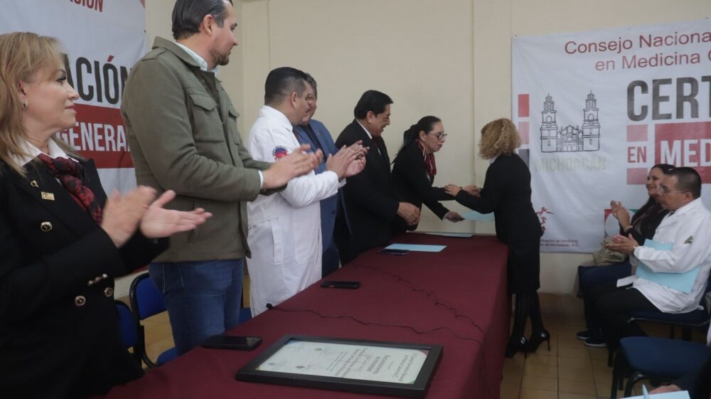 El Colegio de Médicos de Michoacán y el Consejo Nacional de Certificación de Medicina General (CONAMEGE) llevaron a cabo la entrega de certificados y recertificaciones a profesionales del primer nivel de atención, en un acto que destacó la relevancia de la actualización académica en el sector salud.