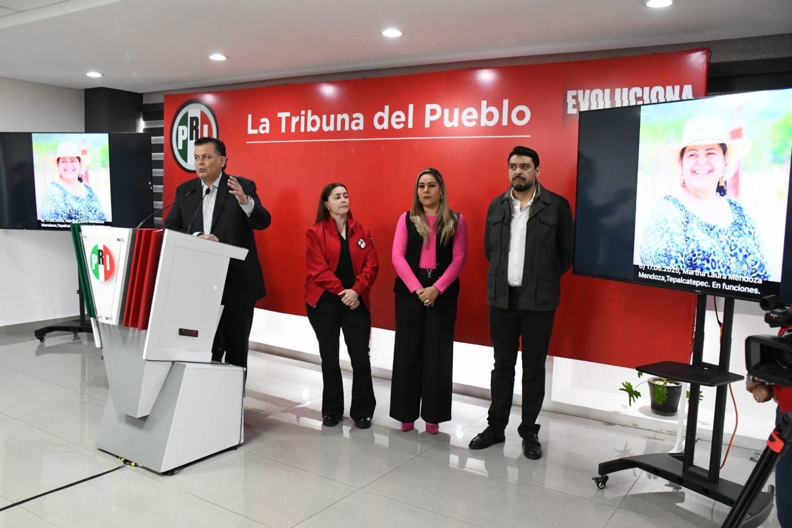 Acompañaron a Memo Valencia la secretaria general del PRI, Yadira Guerrero Huerta; la secretaria técnica del Consejo Político Estatal, Edna Martínez Nambo; y los secretarios Arturo Gamboa (Organización), Brenda Garnica (Operación Política), Ana Brasilia Espino (Acción Electoral), Berenice Álvarez (Administración y Finanzas), Verónica Gómez (Innovación Digital), y el dirigente estatal de la Fundación Colosio, Evelio Segura.