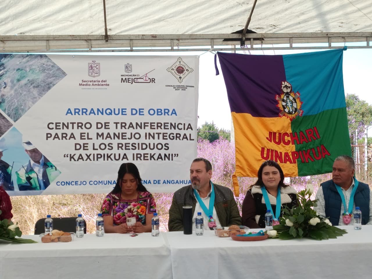El titular de la Secretaría del Medio Ambiente (Secma), Alejandro Méndez López, junto a integrantes del Concejo Comunal de Angahuan, formalizó este martes el inicio de las obras del Centro de Transferencia para el Manejo Integral de los Residuos denominado “Kaxipikua Irekani”.