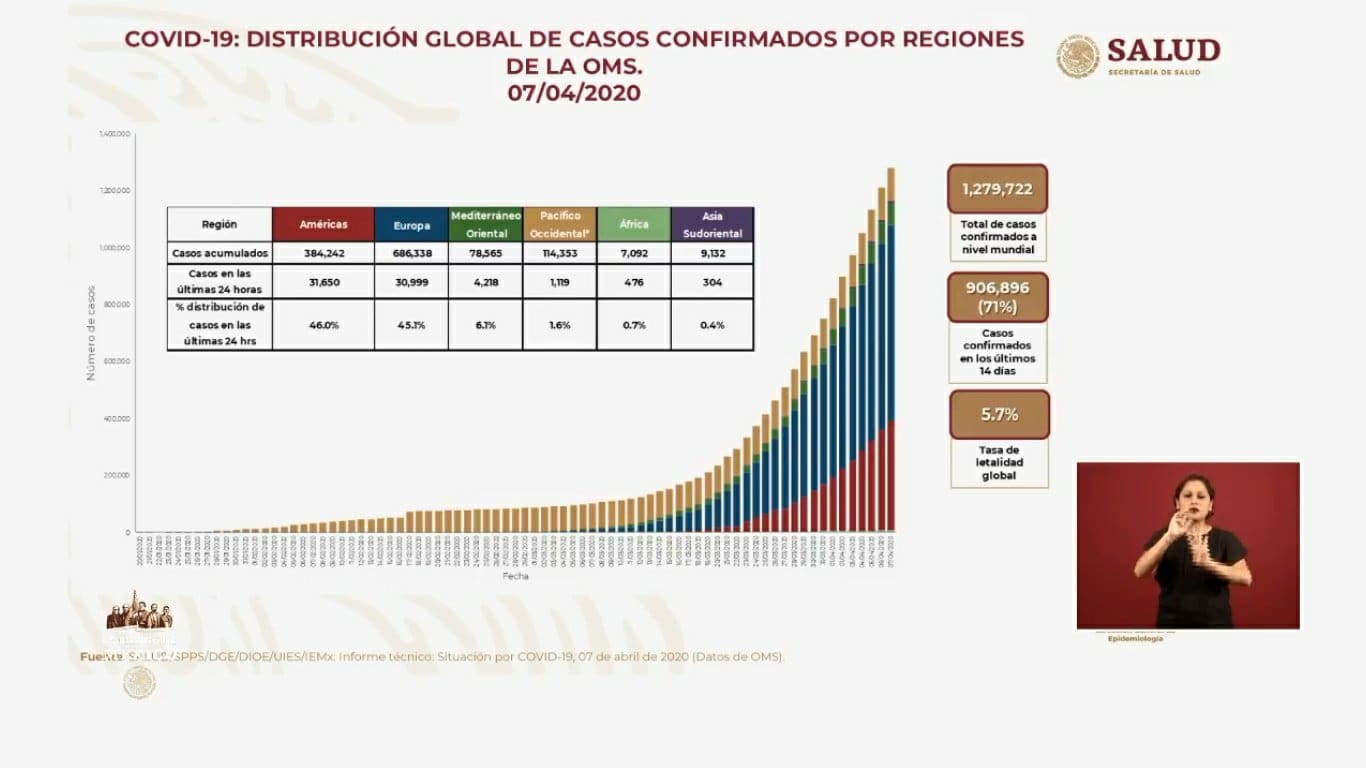 Estos aumentos representan el 12.8% en muertes, y un 14.19% en casos confirmados, respecto al reporte del 6 de abril.