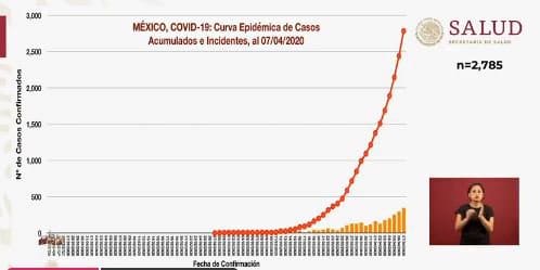 – Durante el reporte vespertino de los casos presentados de #coronavirus en México, la SSA informó que la curva epidémica sigue su curso ascendente.