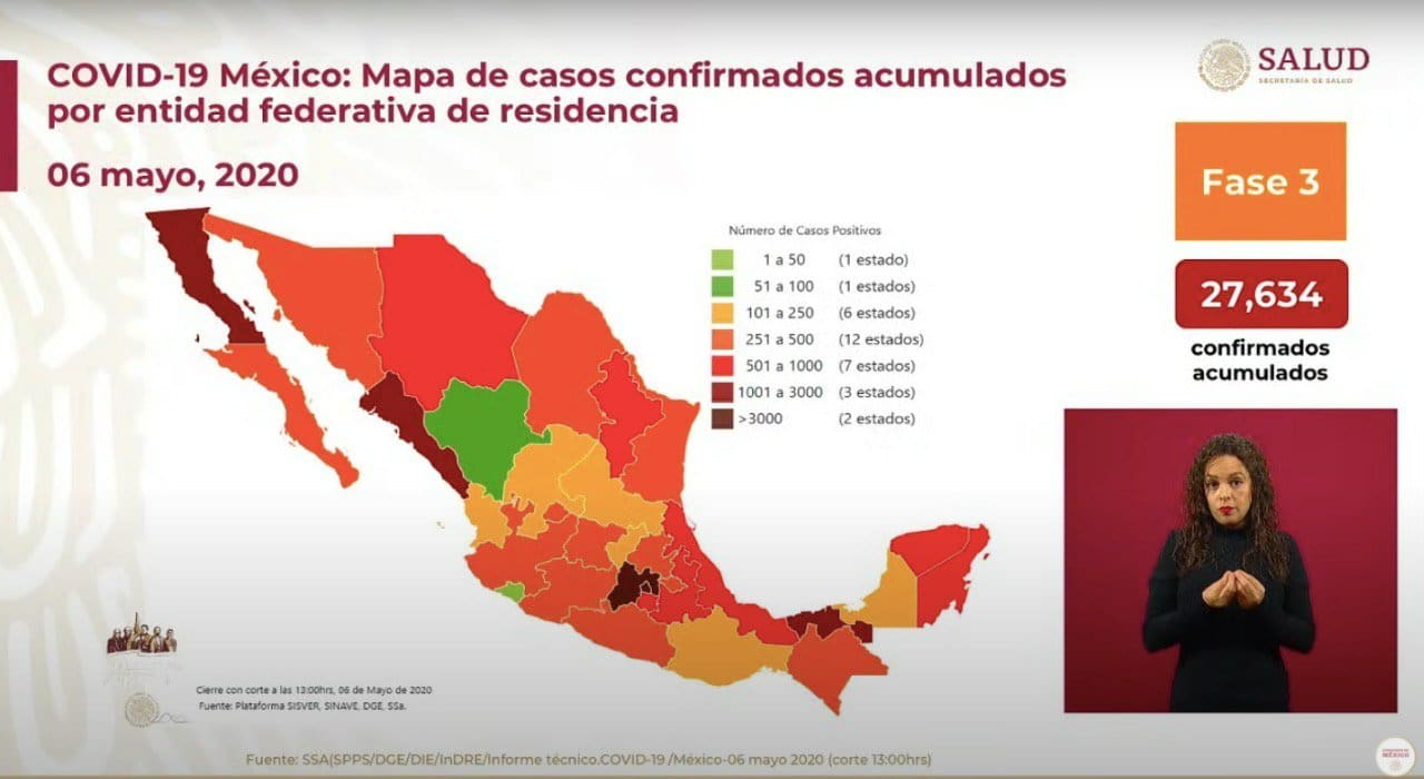 El doctor José Luis Alomía, informó que en #México ya se cuentan 27,634 casos confirmados, 7,149 activos y 2704 defunciones.