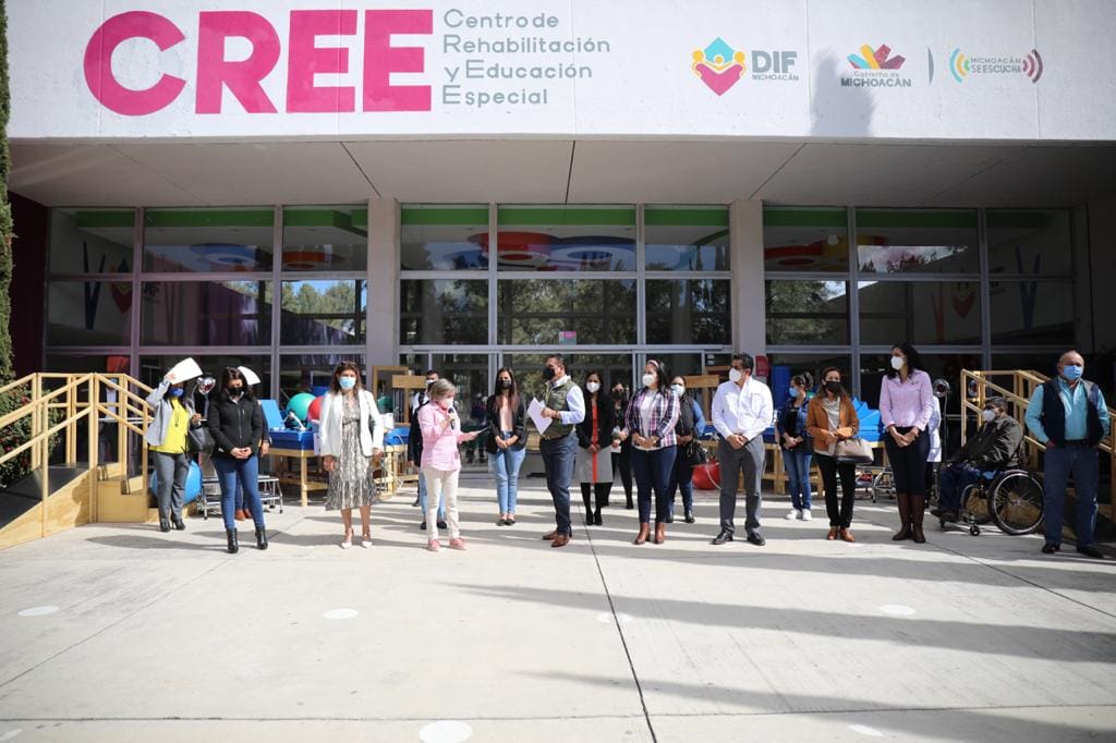 Morelia, Michoacán, a 12 de febrero de 2021.- Michoacán sigue en la ruta para convertirse en un estado inclusivo con la entrega de equipamiento de Unidades Básicas de Rehabilitación (UBR) a 14 municipios y la realización de obras en el Centro de Rehabilitación y Educación Especial (CREE), afirmó el Gobernador Silvano Aureoles Conejo.