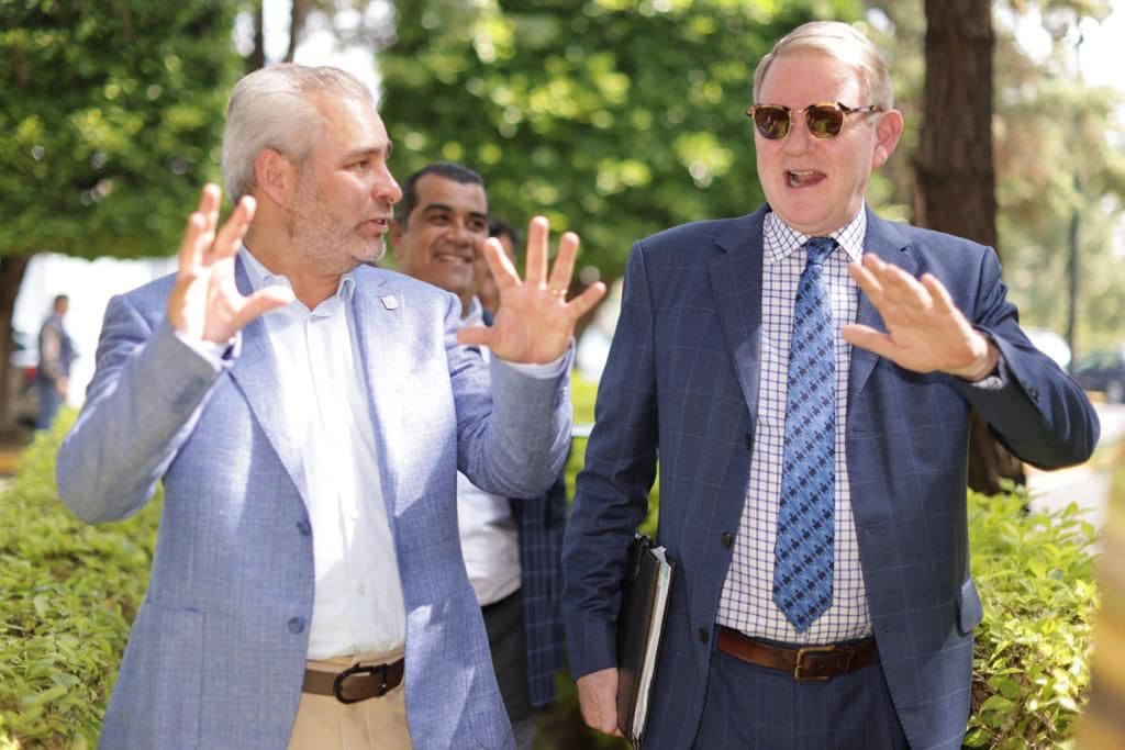 Morelia, Michoacán, 5 de octubre de 2023.- El embajador de Canadá en México, Graeme C. Clarke, externó al gobernador Alfredo Ramírez Bedolla, su confianza para que Michoacán sea punto de referencia para la relocalización de empresas extranjeras o nearshoring.