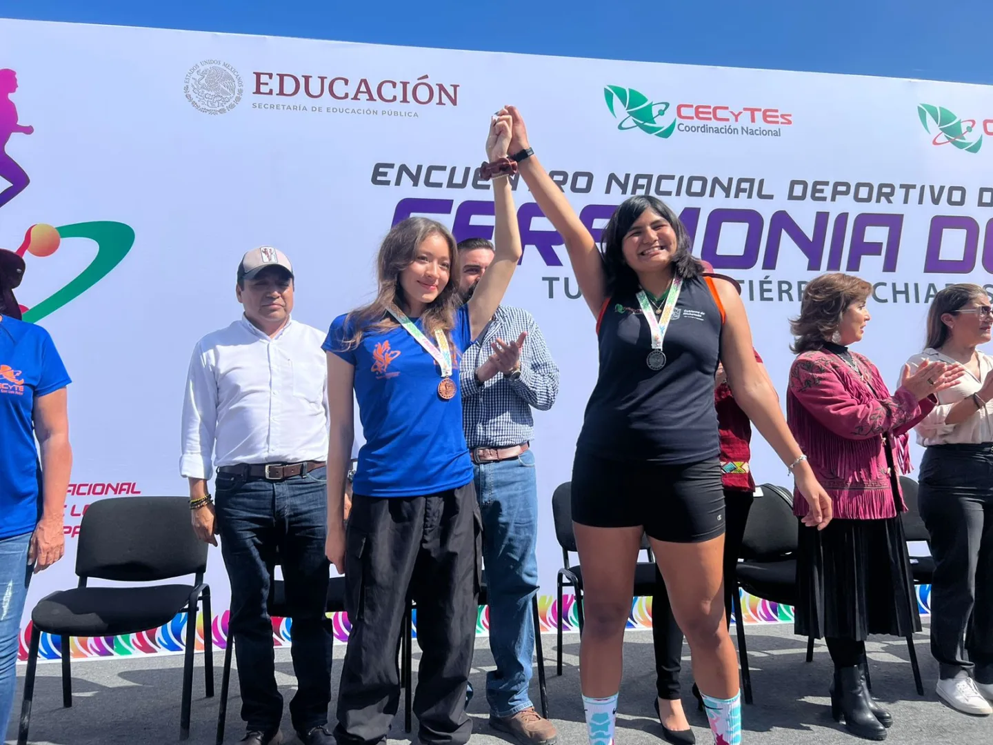 Tuxtla Gutiérrez, Chiapas, 18 de noviembre de 2023.- La delegación deportiva del Colegio de Estudios Científicos y Tecnológicos del Estado de Michoacán (Cecytem) ganó dos medallas de oro y tres de plata en el Encuentro Nacional Deportivo de los Cecyte’s, celebrado en Tuxtla Gutiérrez, Chiapas.