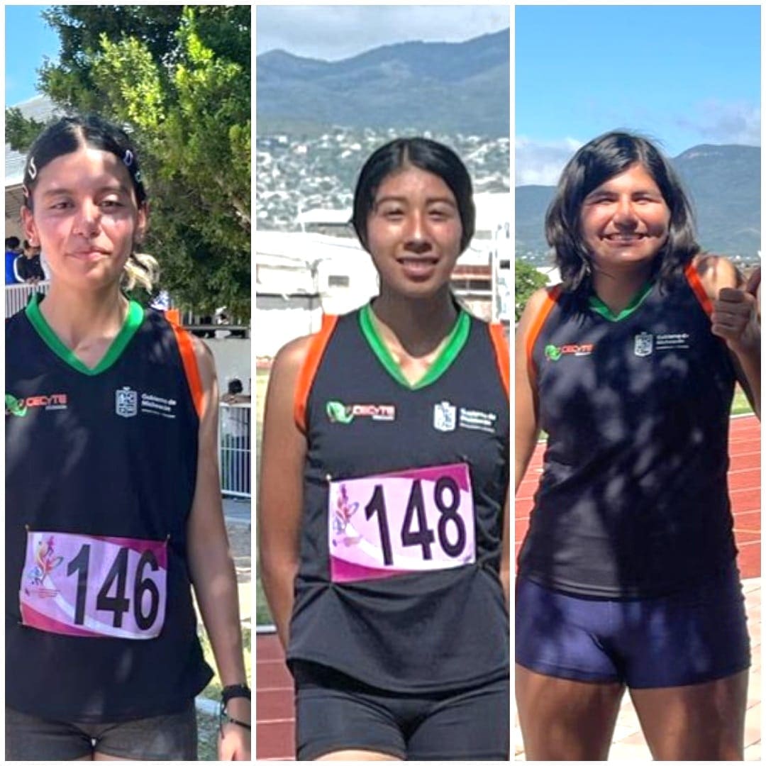 La medalla de oro fue obtenida por Samantha Lozada Aguilar en 800 metros planos; mientras que las preseas de plata fueron para Joselyn Paleo Espino en 5000 metros planos y Nadia Ruíz Albarrán en 200 metros planos, de los planteles Tancítaro, Nahuatzen e Hidalgo, respectivamente.