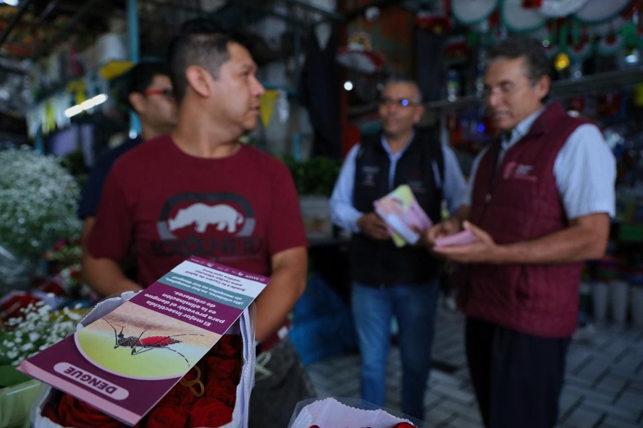 El material informativo promueve la estrategia conocida como “lava, tapa, voltea y tira”, que insta a eliminar cualquier objeto que pueda acumular agua, como llantas, cubetas y botellas, para impedir la reproducción del mosquito. En el mercado de San Juan, por ejemplo, se distribuyeron más de mil volantes entre los comerciantes y visitantes, además de colocar carteles en los puestos y áreas exteriores para aumentar la visibilidad de los mensajes.