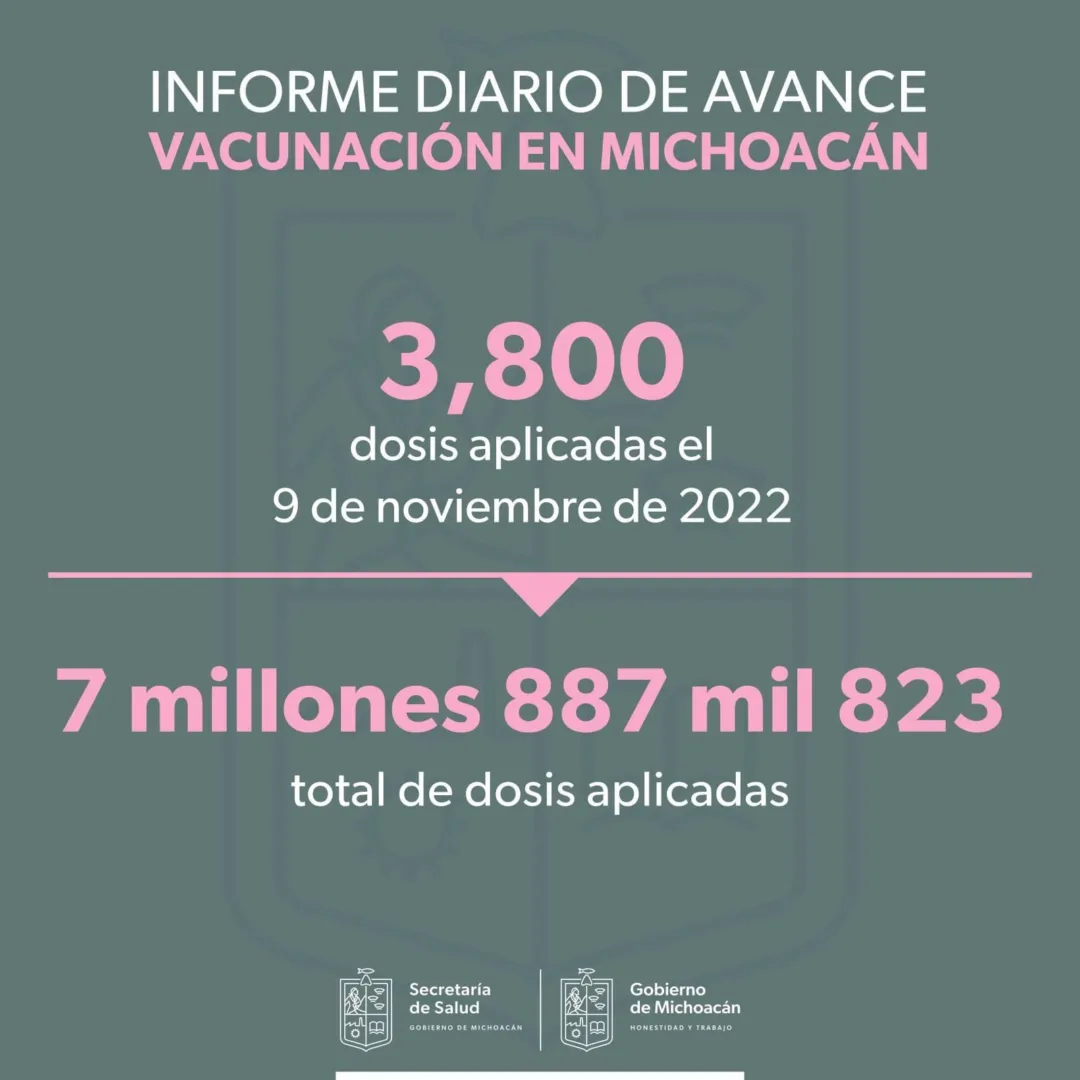 Es decir que hasta el día de hoy, en la entidad 9.2 de cada 10 michoacanos mayores de 18 años cuentan ya con al menos una dosis aplicada, así como 8.7 de cada 10 mayores de 5 años.