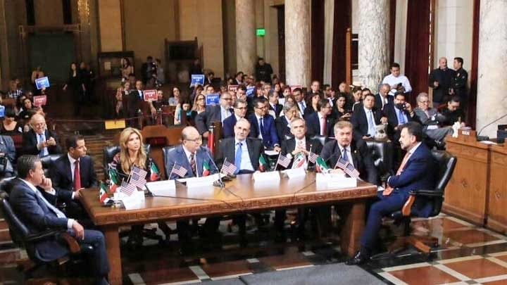 Morelia, Michoacán, a 9 de abril de 2017.- Ampliar, profundizar y fortalecer las relaciones entre California y México, así como la defensa de los derechos de los mexicanos en Estados Unidos, fue el objetivo de la histórica reunión de la Conferencia Nacional de Gobernadores (Conago), representantes de Casas del Migrante, autoridades consulares mexicanas, del estado de California, de la ciudad de Los Ángeles y legisladores de ambos países, llevada a cabo los días 7 y 8 de abril en la capital californiana.