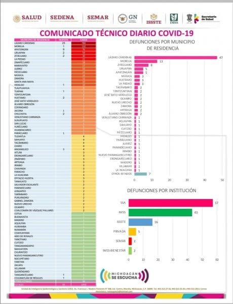 ∆- Michoacán reportó este día 1 muerto por COVID-19 y 1,450 casos positivos acumulados, esto es 50 casos nuevos en menos de 24 horas.