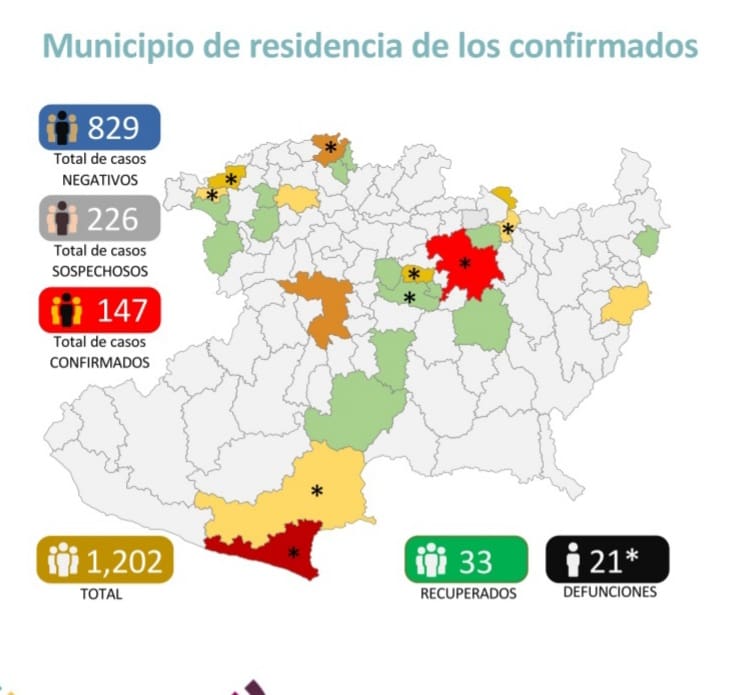 El Comité Estatal de Seguridad en Salud reportó que al día de hoy 21 personas han muerto en Michoacán por COVID-19 y reporta 147 casos confirmados en diferentes municipios, entre los más afectados se encuentran, Lázaro Cárdenas, Morelia, La Piedad y Uruapan, hoy se detecto el primer caso en Tlalpujahua.