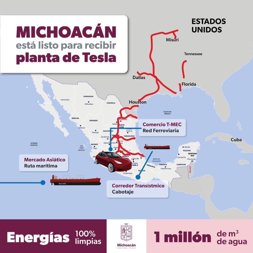 El estado de Michoacán se ha sumado a la disputa por albergar la nueva planta de Tesla en México, que ya cuenta con la candidatura de Nuevo León y Hidalgo.
