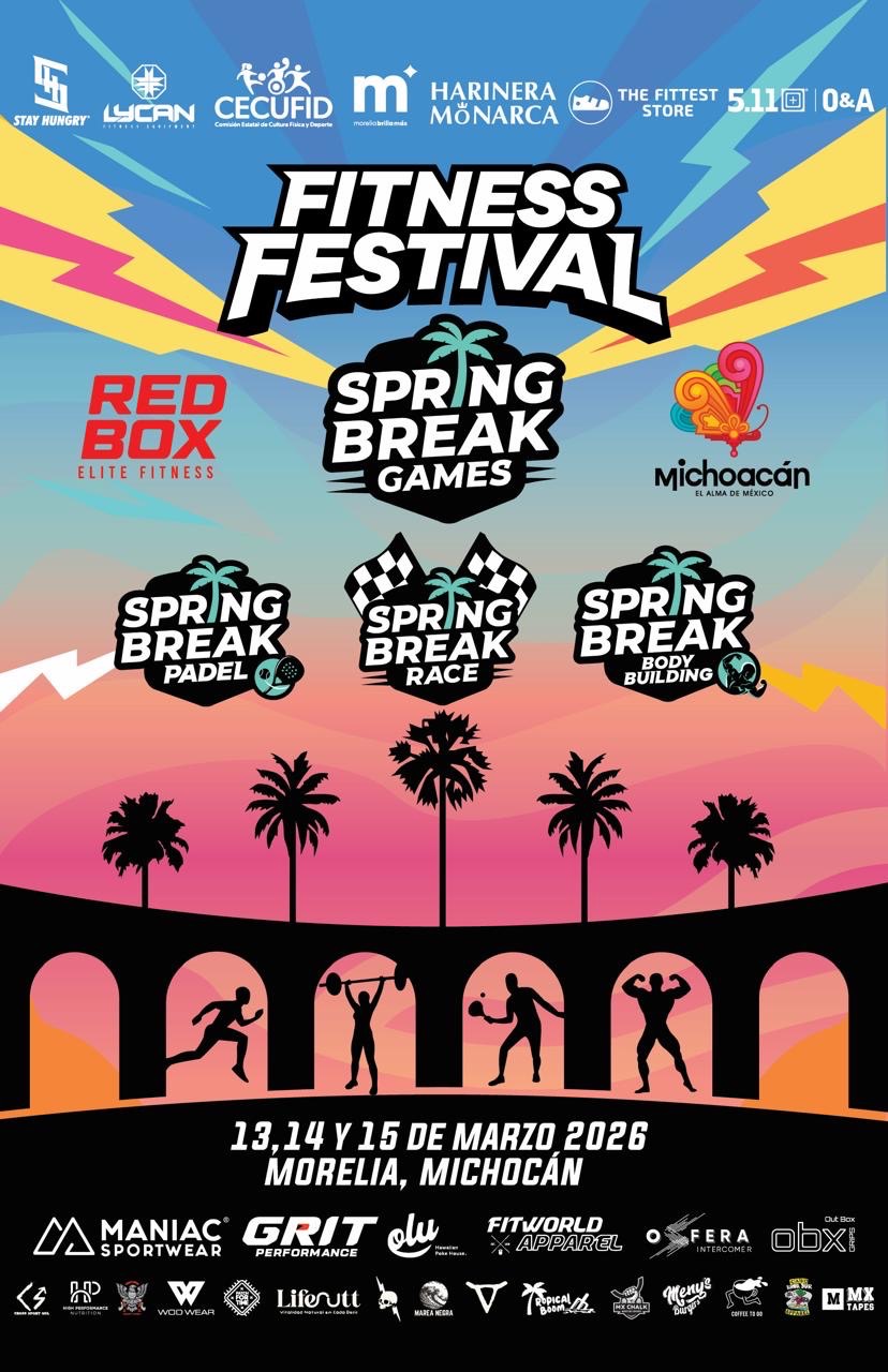 La Secretaría de Turismo de Michoacán, encabezada por Roberto Monroy García, reportó que la entidad recibirá el Spring Break Games Fitness Festival 2026 del 13 al 15 de marzo. El evento, que llega a su octava edición, se desarrollará en el Centro Deportivo Ejército de la Revolución.