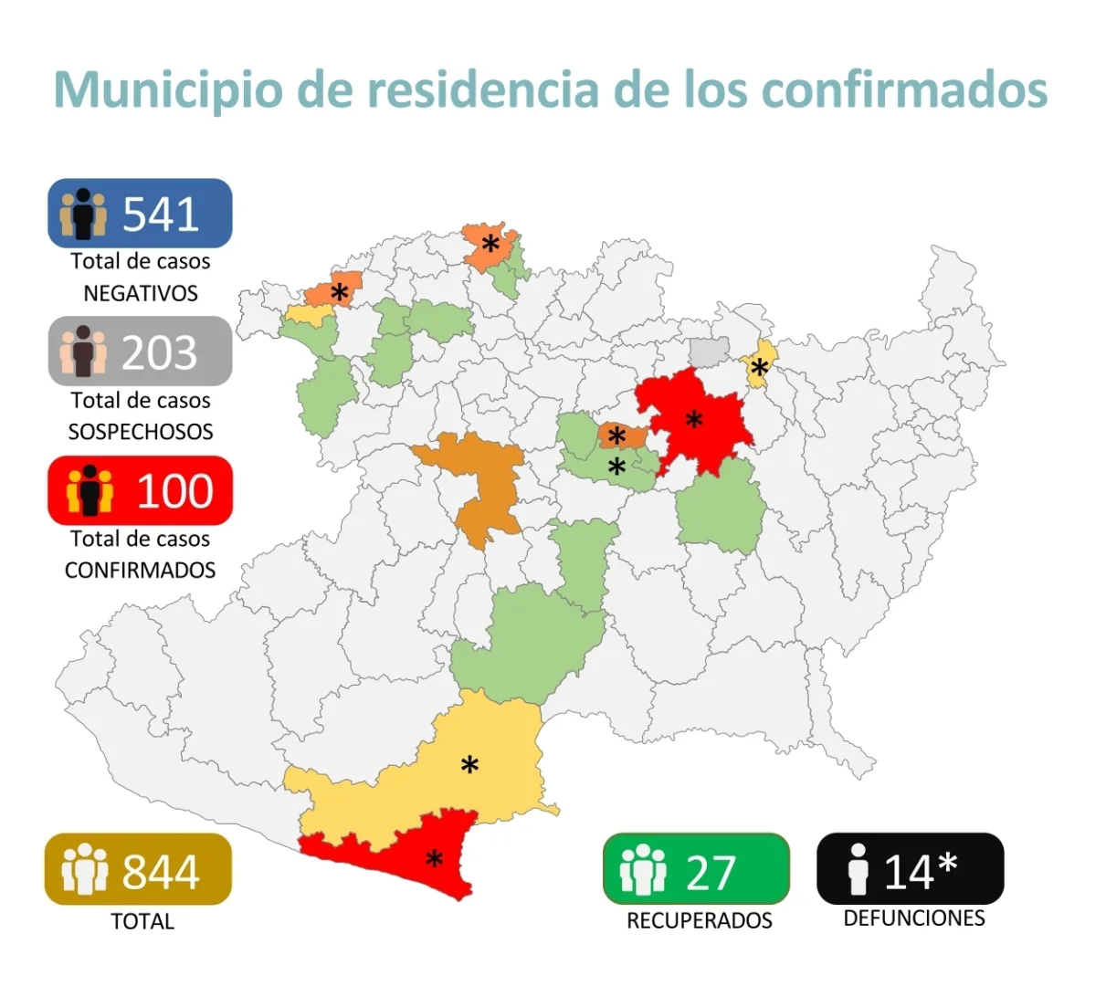 En el reporte emitido la tarde de este jueves por el Comité Estatal en Salud en Michoacán, se reportó la muerte de 14 personas y 100 casos conformados por COVID19