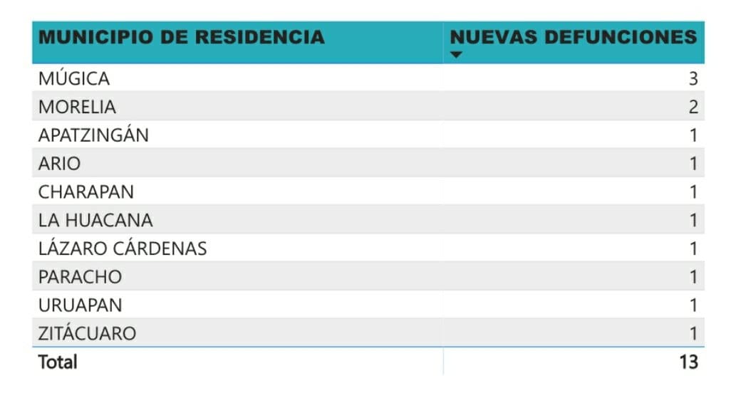 *- Michoacán registró en las últimas 24 horas 13 muertos y 248 casos nuevos por COVID-19.