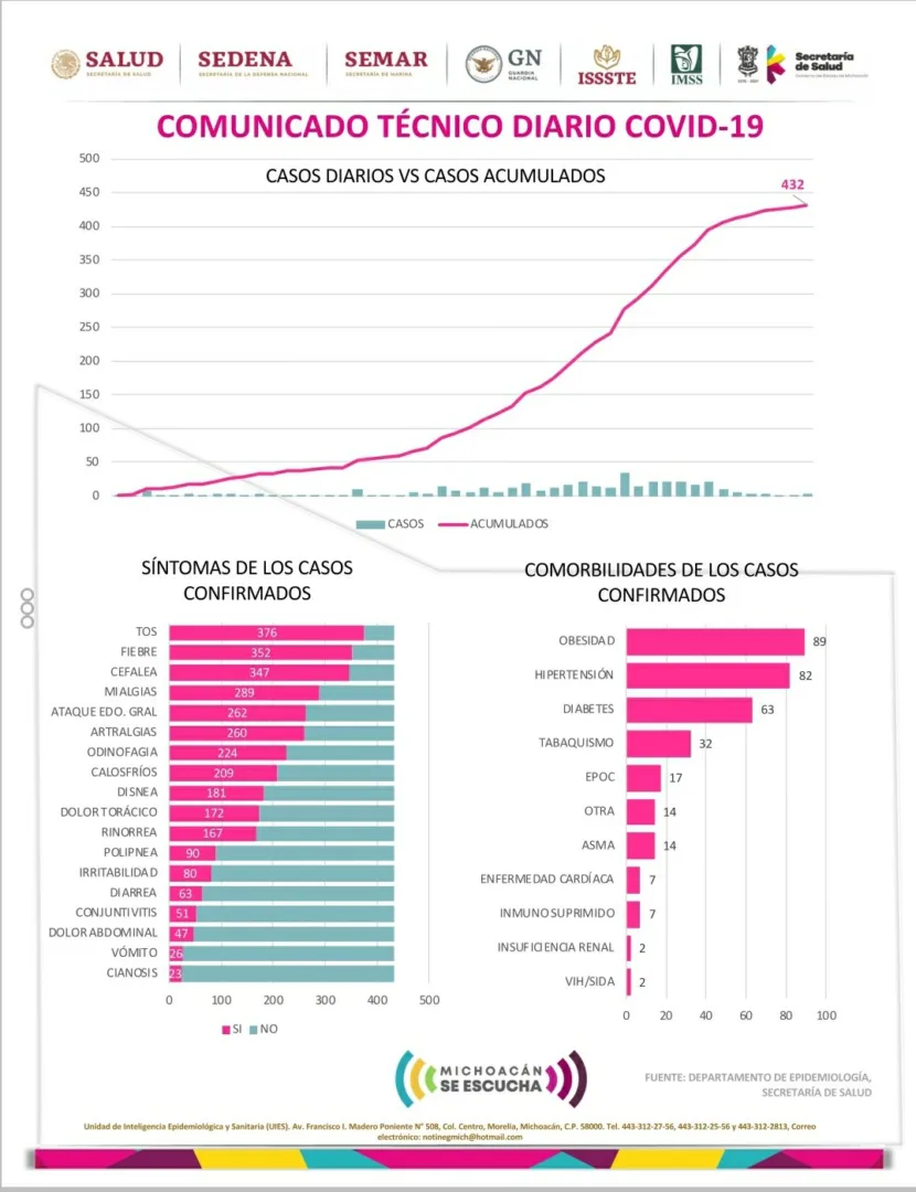 Michoacán suma 56 muertos y 432 casos confirmados de Coronavirus.