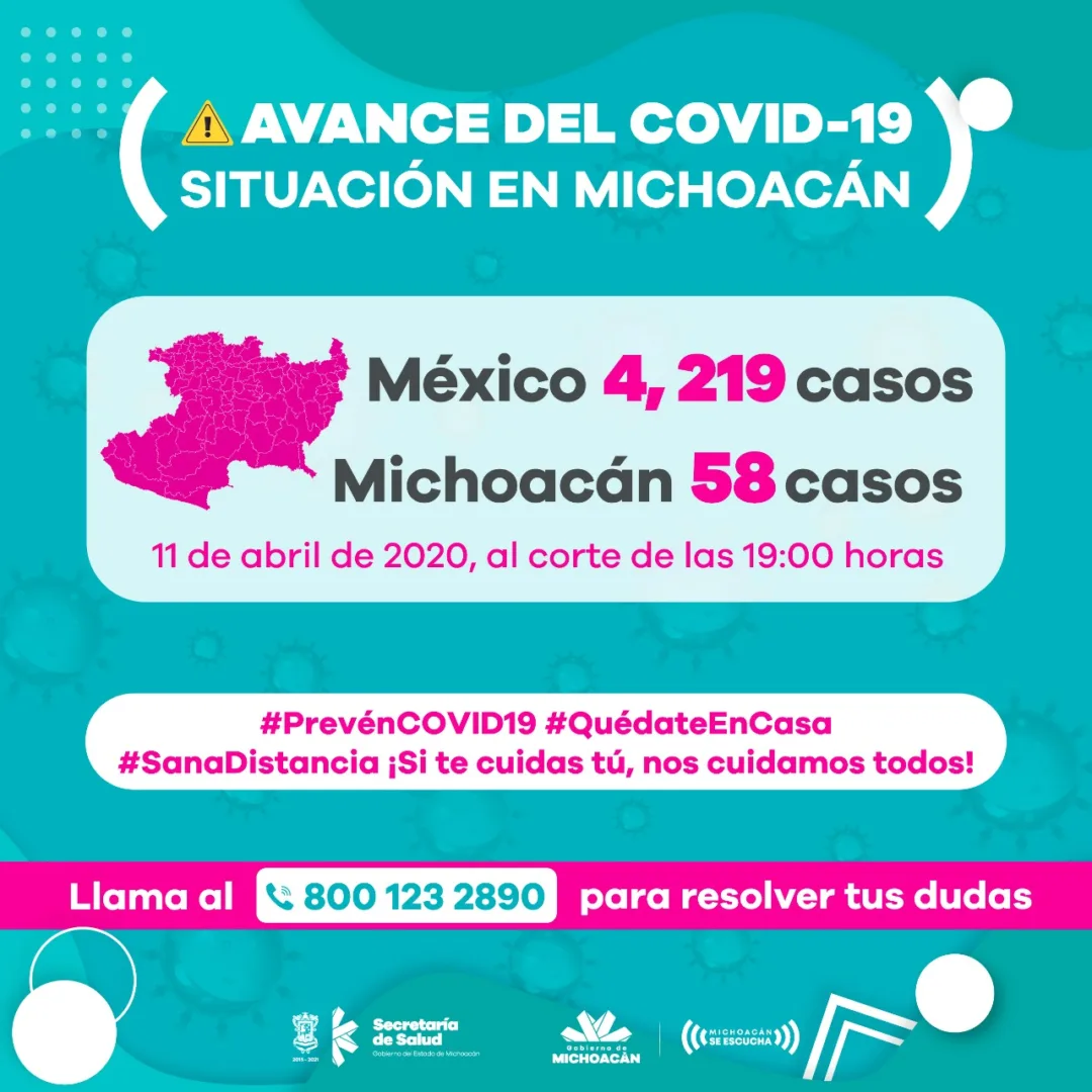 Hasta el momento Michoacán suma 8 muertos y 58 casos confirmados por COVID-19, hay 139 casos sospechosos en diferentes municipios.