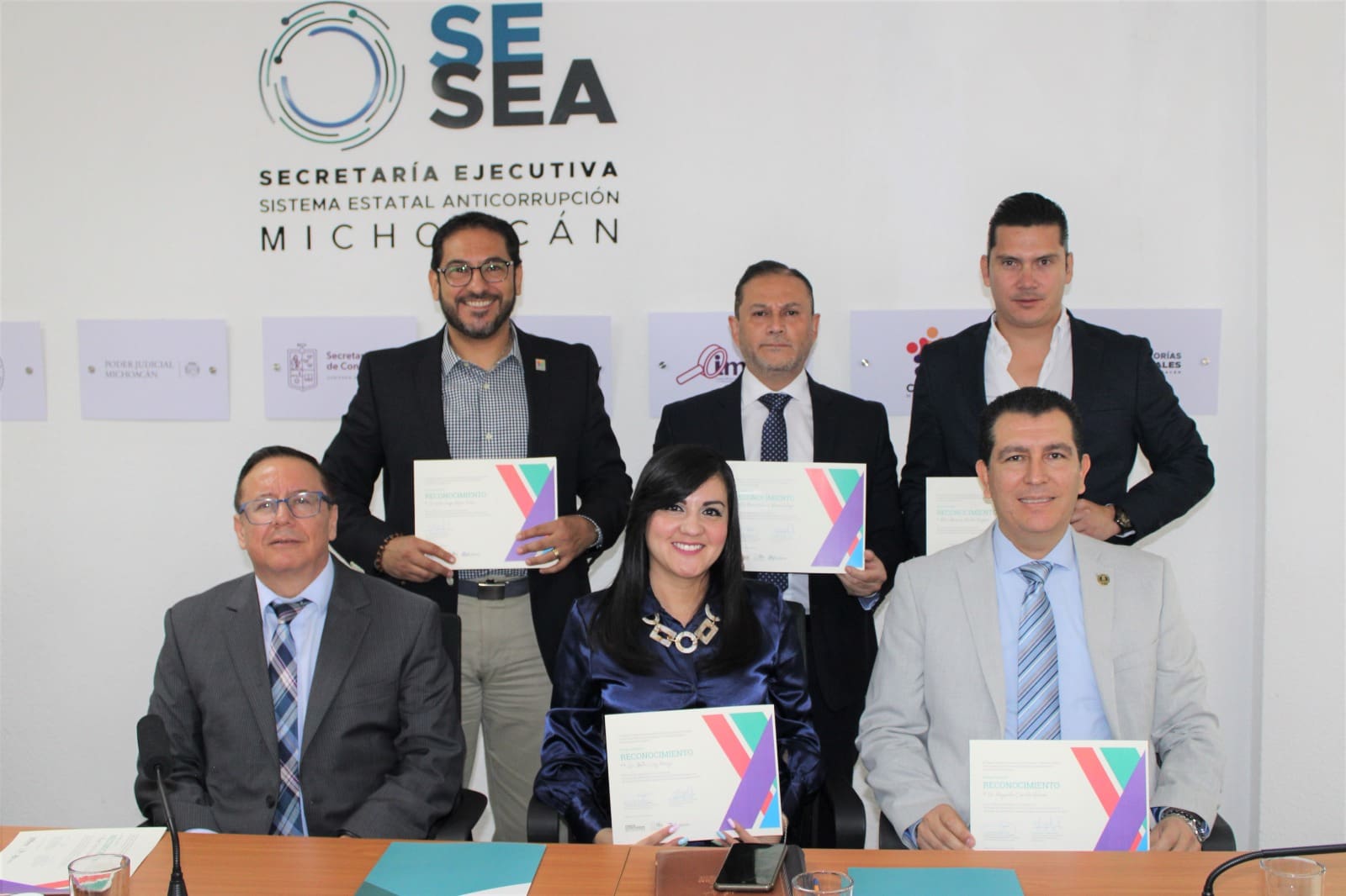 El Presidente del Comité Coordinador, el Dr. Víctor Vieyra reconoció durante la sesión, el trabajo, esfuerzo y dedicación de quienes colaboraron en la creación de este documento: personas servidoras públicas de la Secretaría Ejecutiva del Sistema Estatal Anticorrupción, el Comité de Participación Ciudadana del SEA; así como representantes de cada una de las instituciones que conforman el Comité Coordinador: Auditoría Superior de Michoacán, Poder Judicial del Estado, Secretaría de la Contraloría, Tribunal de Justicia Administrativa del Estado, Fiscalía Especializada en Combate a la Corrupción, IMAIP y los representantes de las contralorías municipales.