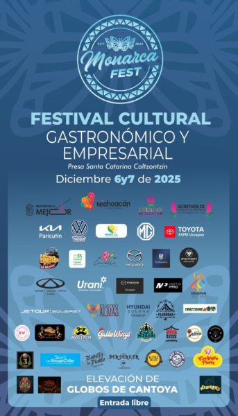 La Secretaría de Turismo (Sectur) de Michoacán, dirigida por Roberto Monroy García, informó que la Expo Cultural, Empresarial y Comercial Monarca Fest se celebrará los días 6 y 7 de diciembre de 2025. El evento tendrá lugar en las instalaciones de la presa Santa Catarina, en Uruapan.