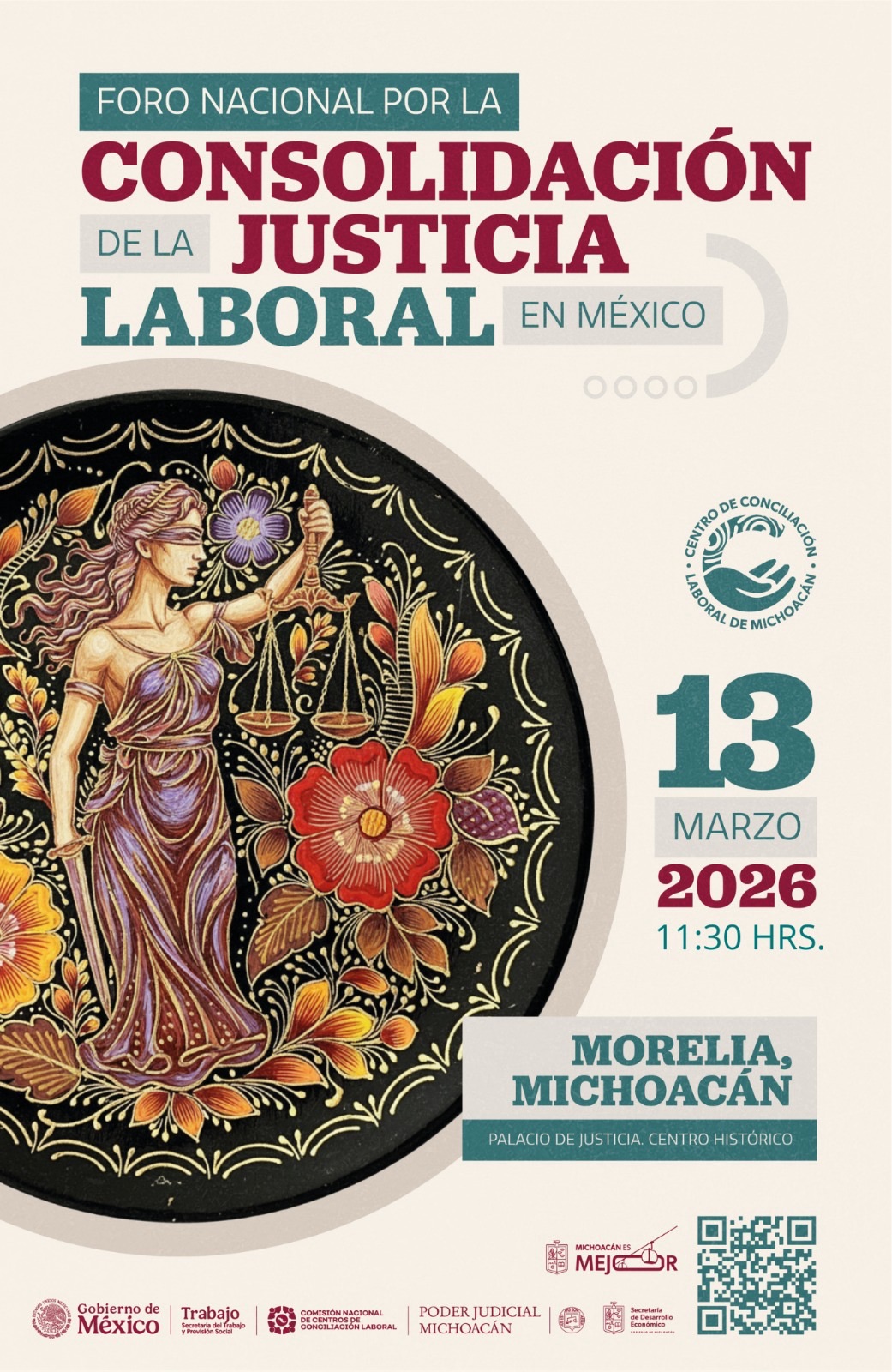 La ciudad de Morelia ha sido designada como sede del Foro Nacional por la Consolidación de la Justicia Laboral en México, según informó el Centro de Conciliación Laboral de Michoacán. El evento se llevará a cabo el próximo viernes 13 de marzo a las 11:30 horas en las instalaciones del Archivo Histórico del Poder Judicial.