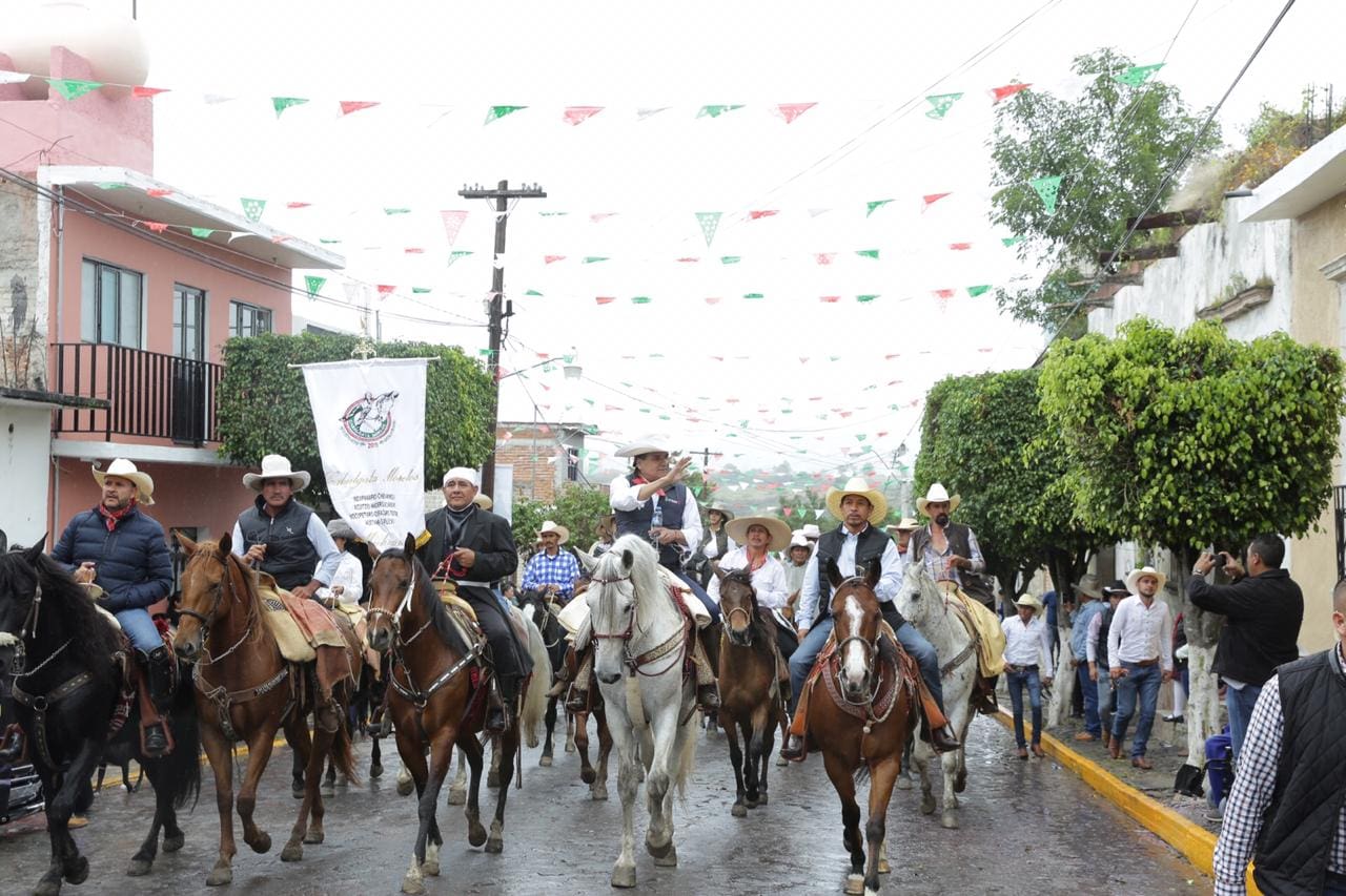 En el municipio de Indaparapeo, el mandatario estatal, junto a hombres y mujeres de a caballo, encabezó el XXV Aniversario del Nombramiento Militar de Don José María Morelos y Pavón y el Aniversario de la Cabalgata Morelos, que en el estado recorre un total de 10 municipios.